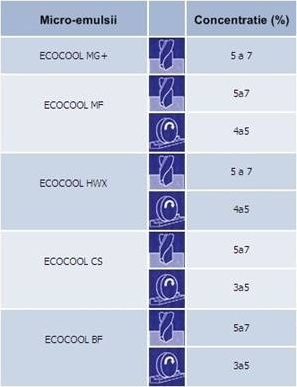 ![]() Ecocool MG+ Ecocool MF Micro-emulsie multifunctionala pentru toate tipurile de metale feroase si neferoase. Adaptate pentru apa dulce si de duritate medie. Convine pentru operatiile de taiere si slefuire. Ecocool HWX Micro-emulsie care are proprietati de extrema presiune (E.P) compatibila cu toate tipurile de metale, feroase si neferoase. Adaptata pentru apa de duritate mare. Potrivita pentru operatiile de taiere si slefuire Ecocool CS Micro-emulsie universala de inalta performanta pentru toate tipurile de prelucrare si toate metalele, feroase si neferoase. Ideal pentru toate tipurile de apa, dulce sau dura. Excelenta stabilitate, consum mic. Ecocool BF Micro-emulsie fara bor pentru toate tipurile de prelucrare si toate metalele feroase si neferoase. Adaptate la apa de duritate medie. Excelenta stabilitate. |